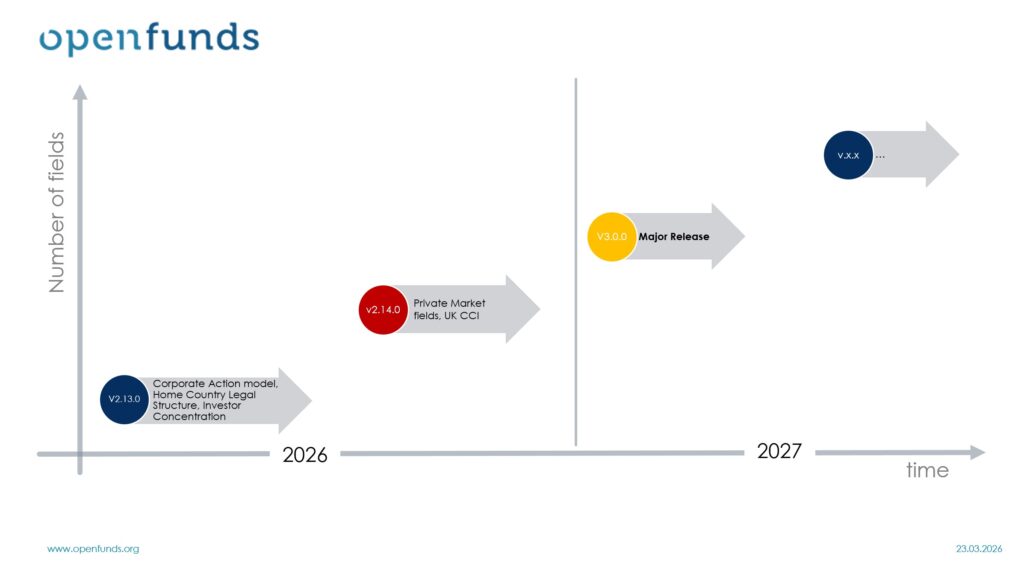 At openfunds we consider two general updates in a year as a good compromise between the size of the updates and the flexibility needed to cope with new regulatory requirements. As we have seen an increasing tendency for new fund regulations, not only in Europe but also in many individual countries in and outside Europe, this puts some pressure on openfunds for more releases, so we have recently had the need to provide extra interim releases to cope specifically with regulatory updates. We will monitor the situation going forward and will accomodate in case of requirements.